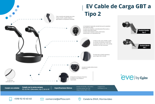 Cable EV GB/T - Tipo 2 - AC - Carga 7 kW.