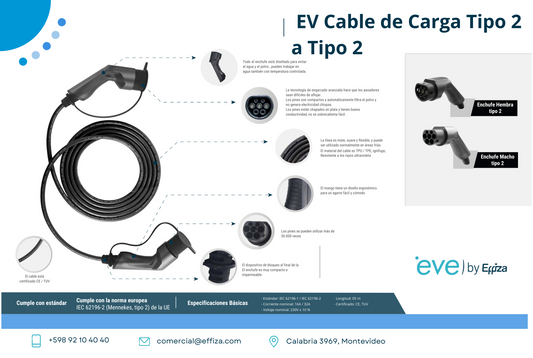 Cable Para Carga EV Hembra TIPO 2/ Macho TIPO 2